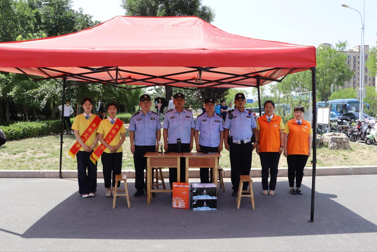 考场内的学子奋笔疾书,考场外的父母焦灼等待。志愿者们为父母们也准备了清凉的矿泉水和解暑降温用品,为他们一一分发,希望能够缓解他们焦虑的心情。此外,志愿者们还积极配合交警在考点周边开展净化考场环境专项志愿服务,引导交通秩序,为广大考生营造一个安静、温馨的考试环境贡献一份力。