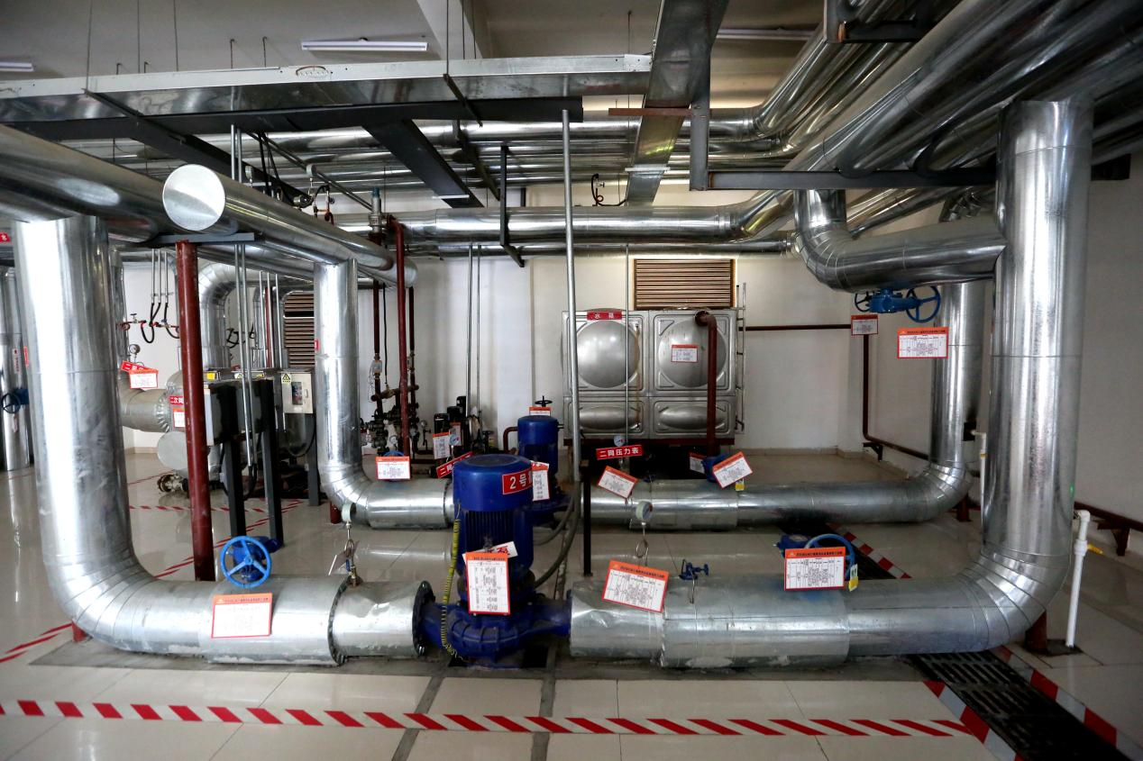 商河一小区换热站内景(央广网记者 唐磊 摄)