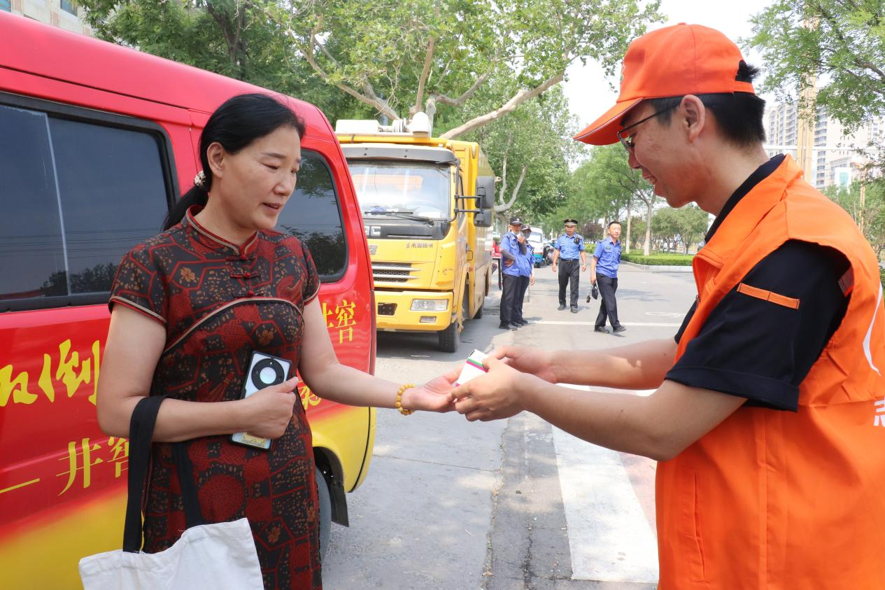 6 月 7 日清晨,志愿服务队早早抵达长清一中、章丘区第五中学等考点开始设置“爱心助考”志愿服务站,搭建帐篷供考生和家长们休息避暑,志愿者们带着一抹标志性的“能源橙”,以饱满的精神状态投入到服务中。现场为考生和家长免费提供应急文具和藿香正气水、矿泉水、湿巾等防暑降温物品,助力考生保持良好状态,缓解家长焦虑情绪。
