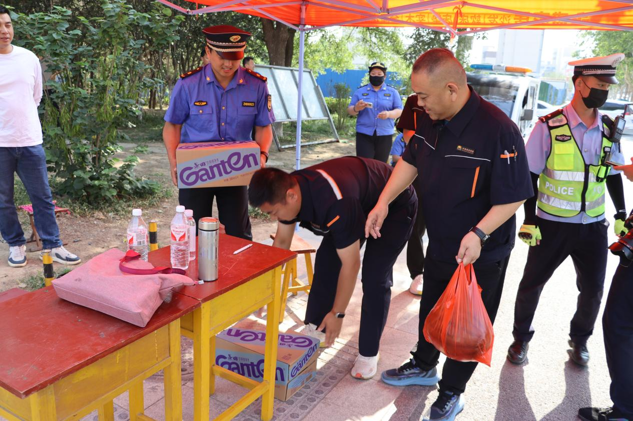 志愿者们还为在高温下坚守岗位的工作人员送去了西瓜、矿泉水等降暑物资,感谢他们为保障中考顺利进行付出的辛勤努力。