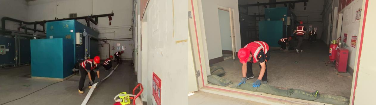 随后,一场“不提前通知、不设定脚本、不预设场景、不预设地点”的实战演练拉开帷幕。蒸汽泄漏、机械伤害、设备积水倒灌……一系列突发险情模拟接踵而至,考验着每一位职工的应急反应能力和团队协作精神。职工们临危不乱,精准报告事故情况,第一时间启动应急预案,应急响应机制高效运转。在千佛山东锅炉房的防汛演练中,各小组通过对讲机实时联动,15分钟内完成“断险-阻水-排涝”全流程处置,为关键设施安全筑牢“防汛铁壁”。