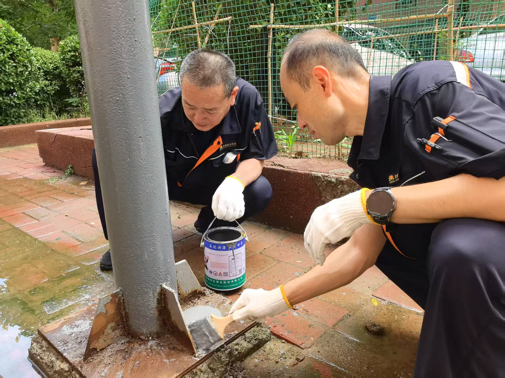 据了解,济钢片区作为供暖老社区,该区域部分供暖管道支架历经长期风雨侵蚀,出现漆面剥落、铁锈滋生等问题,既影响城市美观,又存在安全隐患。山东睿冠党支部抢抓夏季维护黄金期,以除锈、打磨、底漆、面漆四道工艺为核心,推进管道支架“焕新工程”,为支架穿上“防腐铠甲”,从源头杜绝供热隐患。